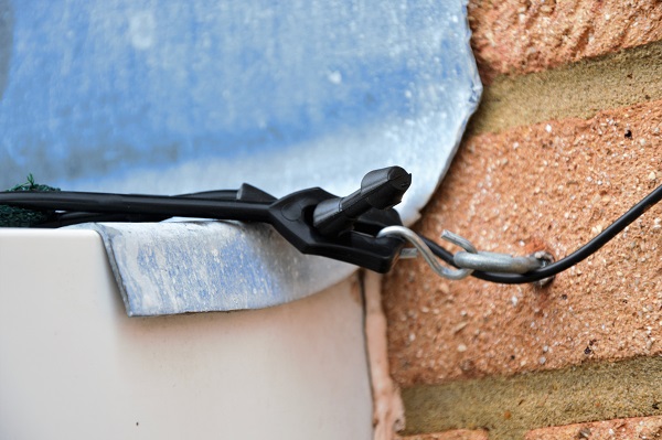 The peripheral cord is looped under the side roofbars. This shade withstood 11 named storms during the winter of 2015/16 without movement!